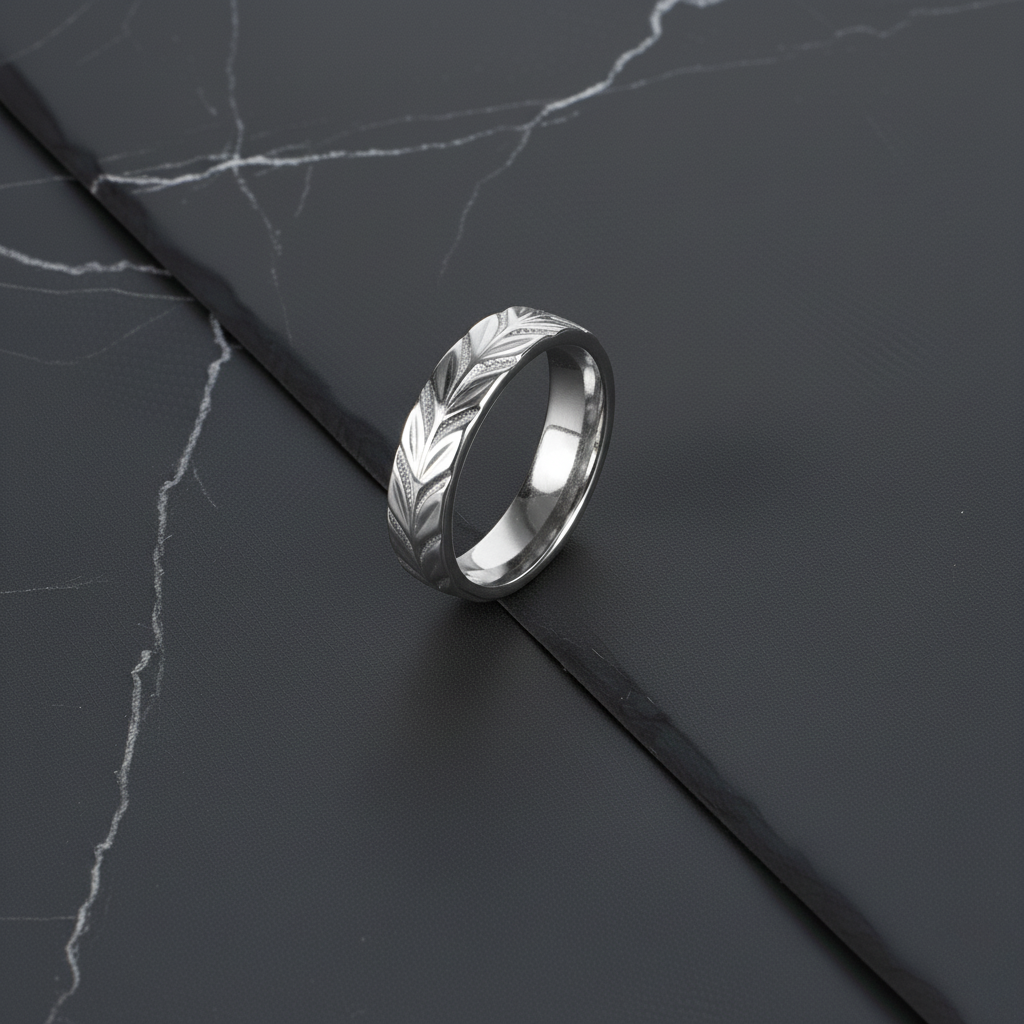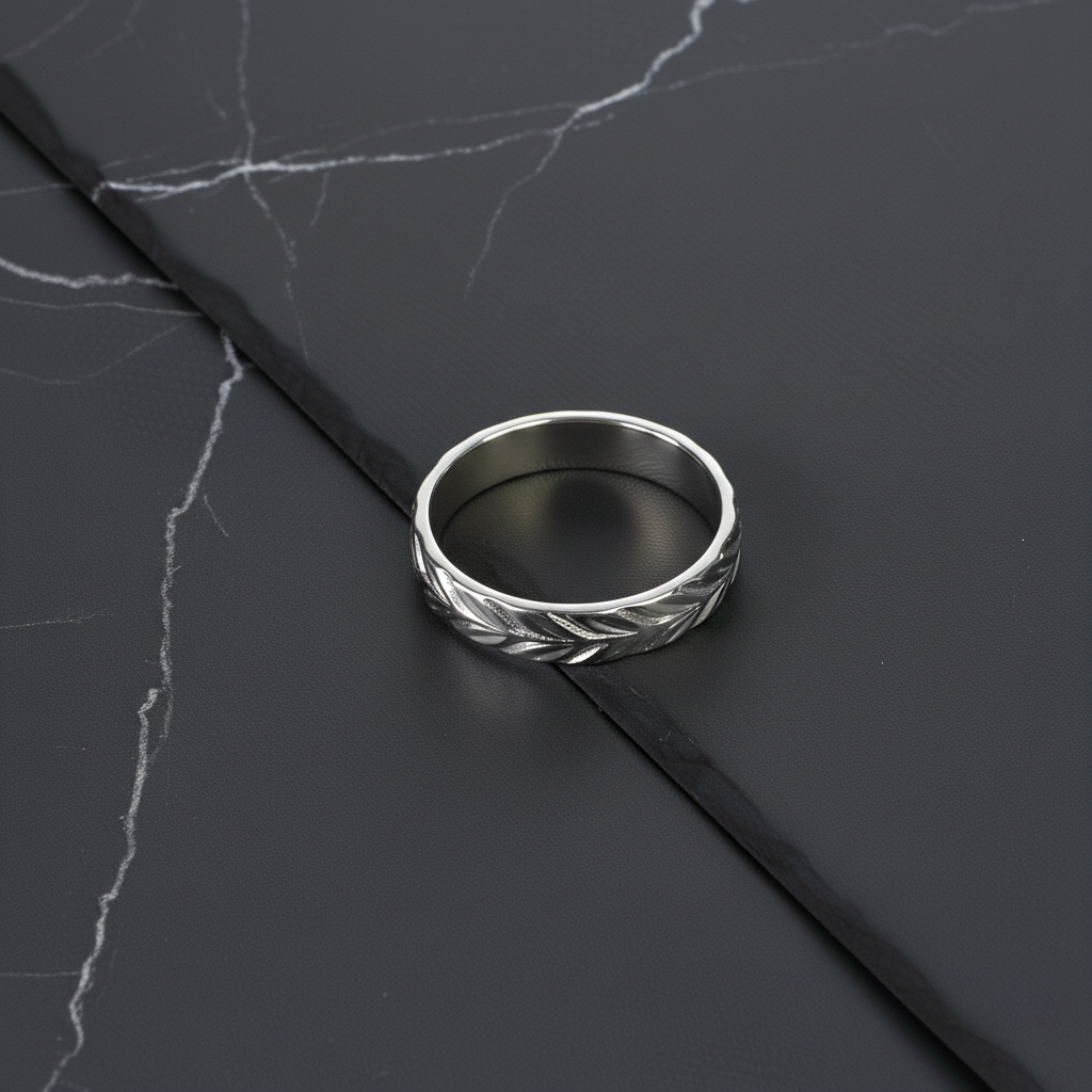 ElBanda de Laurel – Edición VictoriaEs un homenaje sutil a cada desafío enfrentado y cada triunfo alcanzado. Grabado con un motivo continuo de laurel —un antiguo símbolo de logro, honor y perseverancia—, este anillo no celebra la meta. Honra el camino recorrido.
