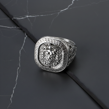 Un audaz rostro de león, enmarcado con gran detalle, simboliza fuerza, presencia y liderazgo. Diseñado para destacar y para mantenerse firme : un poderoso recordatorio de que el verdadero coraje no necesita corona.